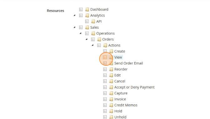 8. Give rights for Sales -> Operations -> Orders -> Actions -> View.